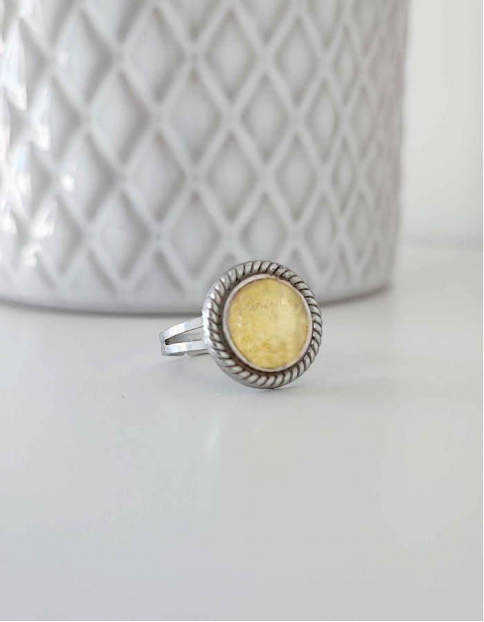 Anel em liga de zinco com folha de ouro.