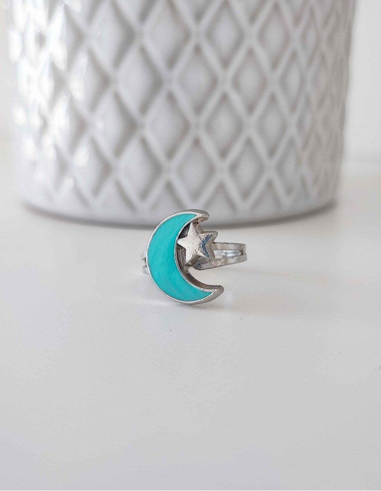 Anel em liga de zinco com lua e estrela.