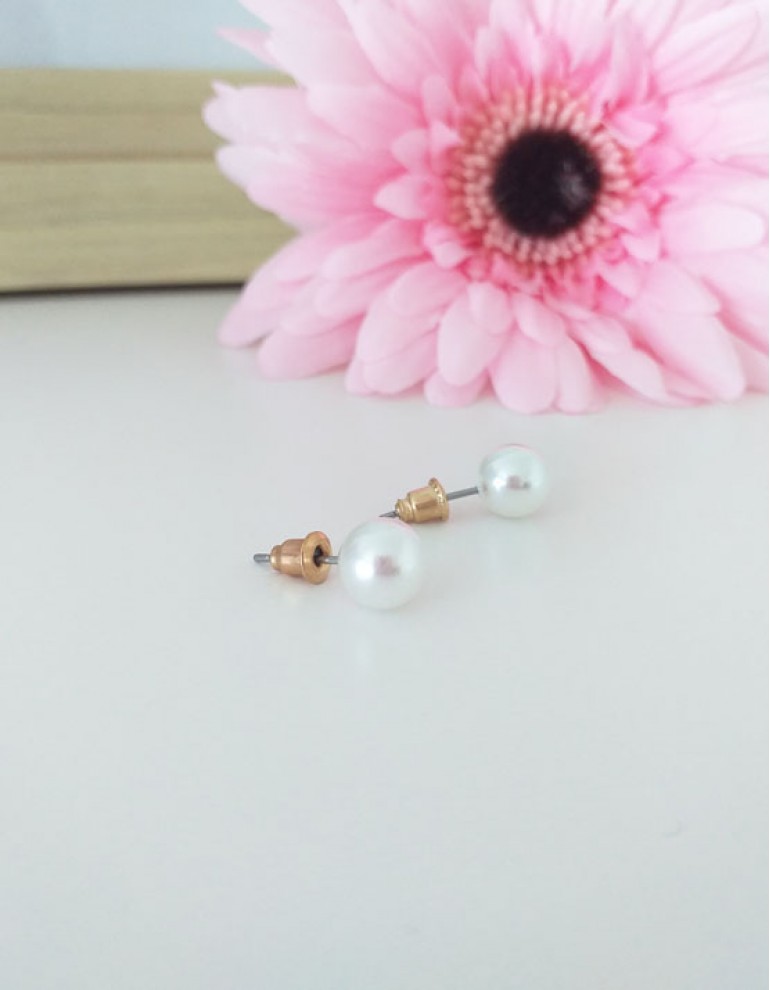 Brincos em metal com esferas.