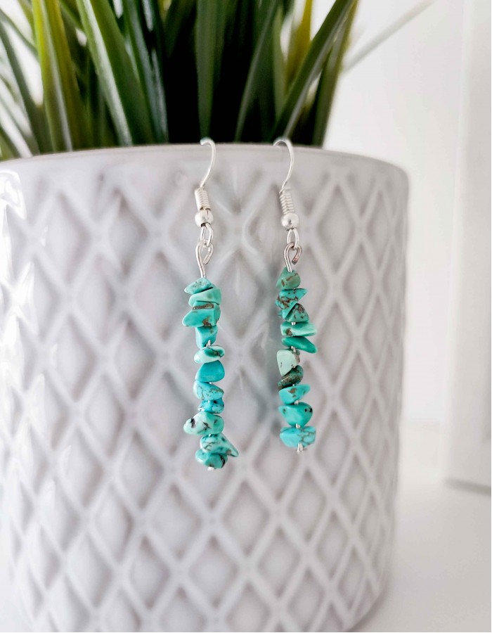 Materiais: metal liga de zinco (cor prateado), turquesa natural