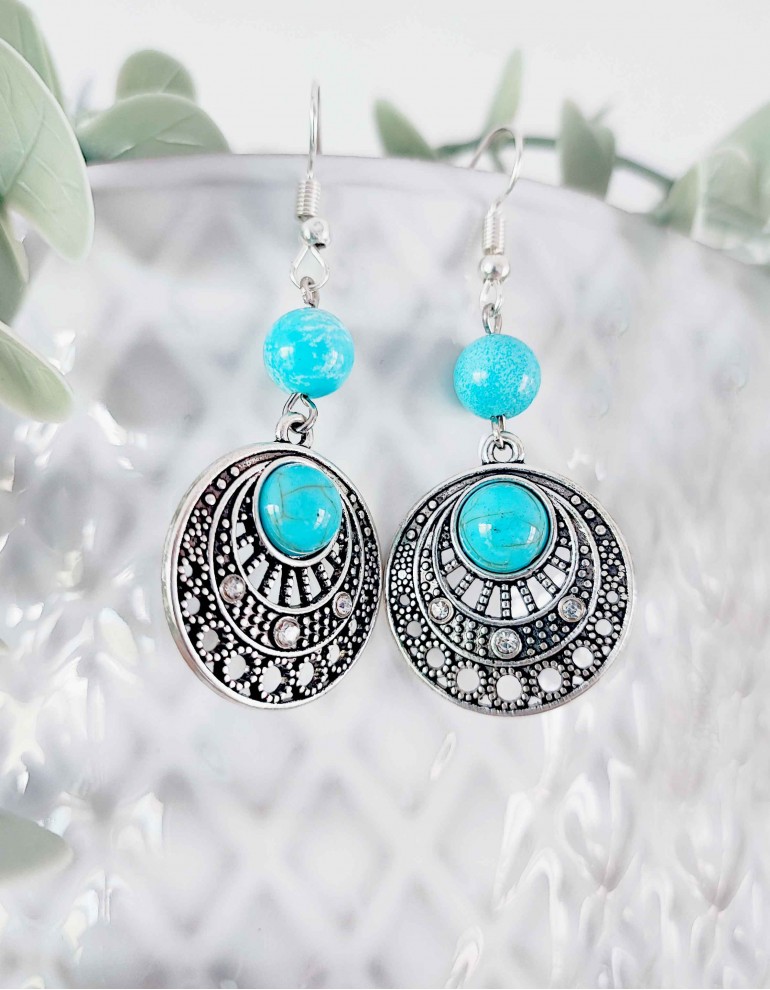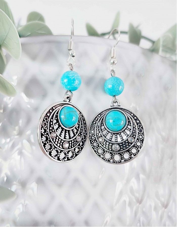 Materiais: metal liga de zinco (cor prateado), pedra turquesa natural