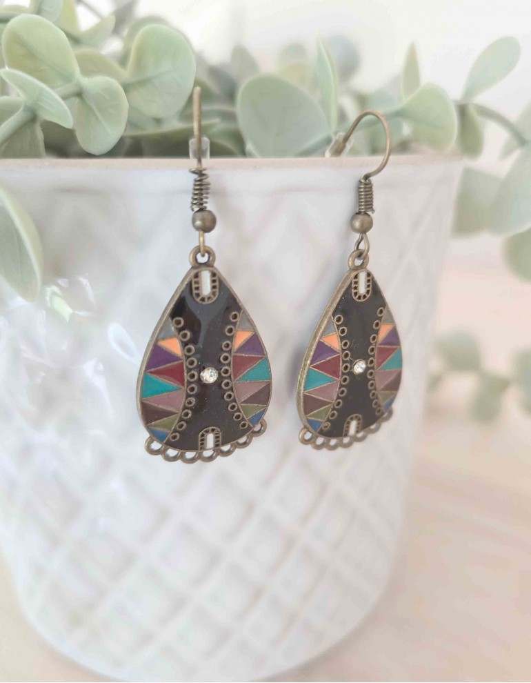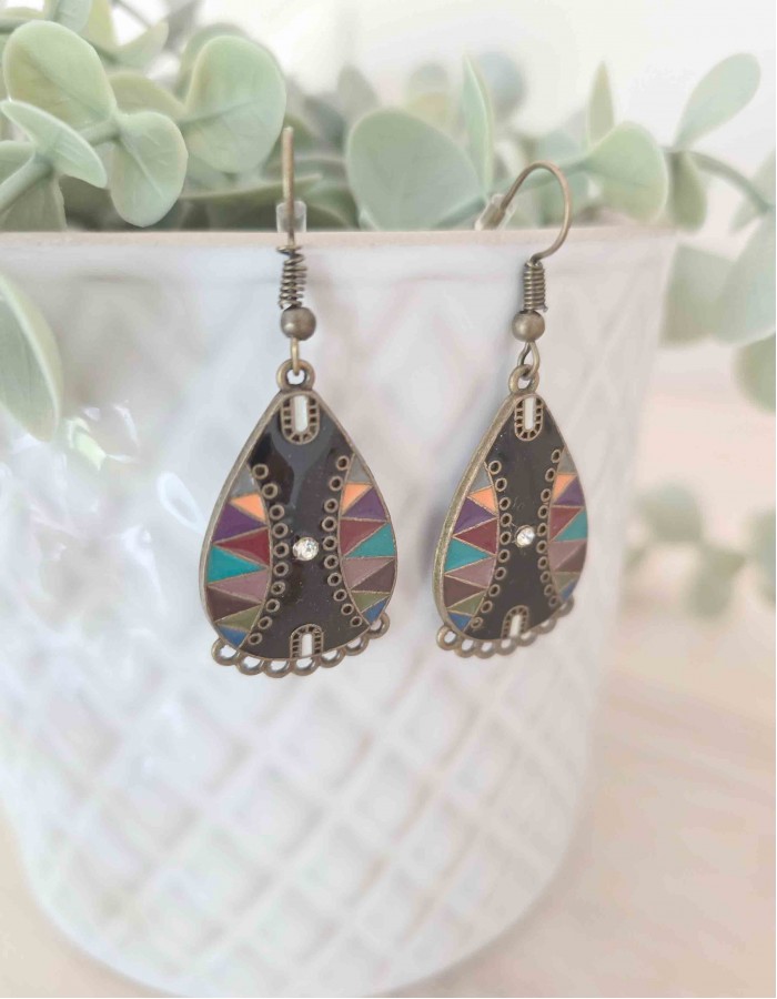 Brincos em metal coloridos.
