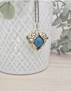 Materiais: aço dourado, esfera turquesaTamanho aprox.: 25x23mmCordão: corrente bronze em aço, aprox. 70cm