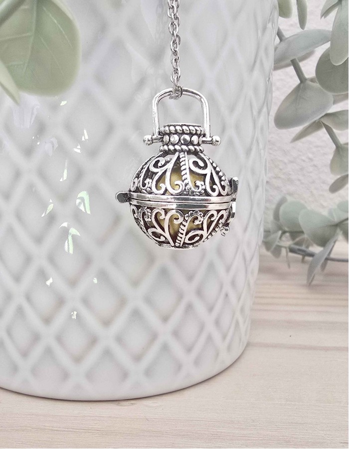 O chamador de anjos, também conhecido como bola da harmonia, consiste num pendente metálico muito semelhante a uma gaiola dentro da qual é inserida uma esfera, normalmente colorida, que emite um som muito suave e harmonioso que lembra um guizo.O seu som celestial tem o poder de atrair a protecção dos anjos, de repôr a harmonia e a paz e ajudar na elevação da vibração afastando as energias negativas. Tornou-se um maravilhoso instrumento de protecção e comunicação com os anjos e os guias espirituais. Embora não existam dados históricos que comprovem a sua origem, acredita-se que tenha surgido na Indonésia.Conta uma das lendas que os anjos ofereceram aos elementais da natureza um amuleto de protecção para que sempre que se sentissem em perigo o agitassem e assim, rapidamente, os anjos viriam protegê-los.Na cultura maia era considerado um objecto de invocação do anjo da guarda para protecção do portador do amuleto. Já na idade média, acreditava-se que o som suave do guizo estabelecia uma ligação directa com o reino celestial e invocava os anjos e os elementais da natureza para acompanharem a gravidez da mulher protegendo-a e ao seu bebé. Após o nascimento, o amuleto era pendurado no berço junto ao recém-nascido que reconhecia o tilintar suave e sentia-se protegido lembrando-se do útero da mãe.