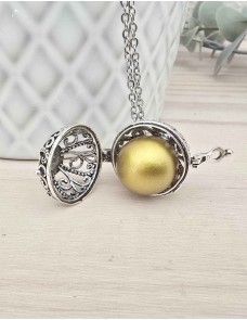 Materiais: aço prateado, esfera douradaDiâmetro aprox.: 21mmCordão: corrente prateada em aço, aprox. 50cm