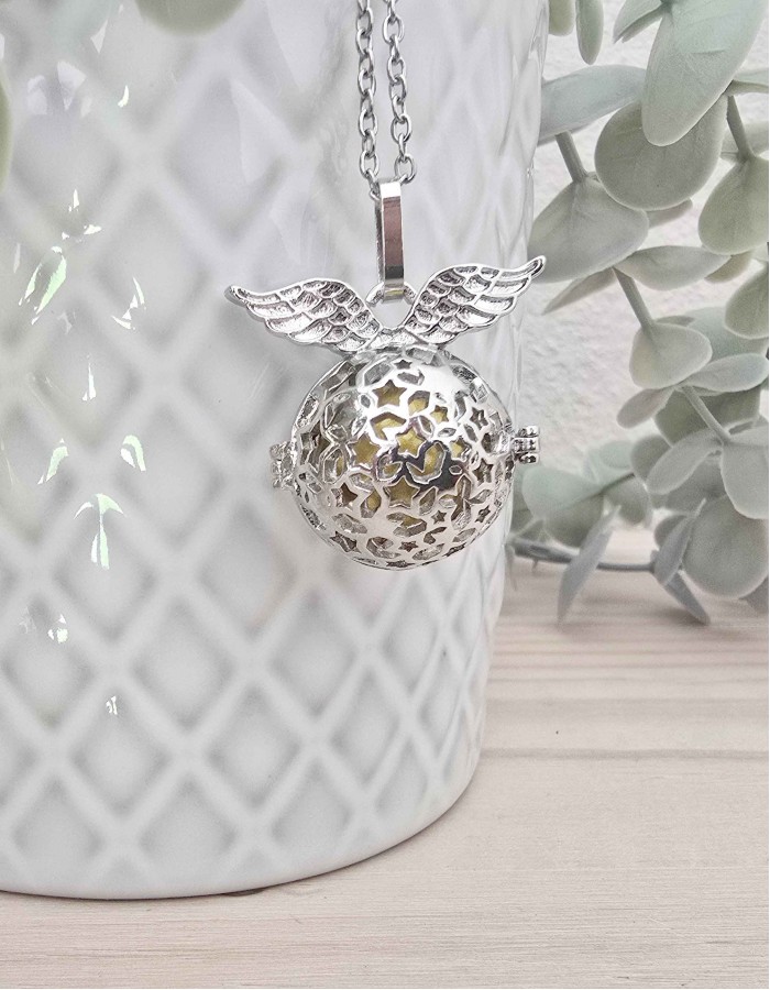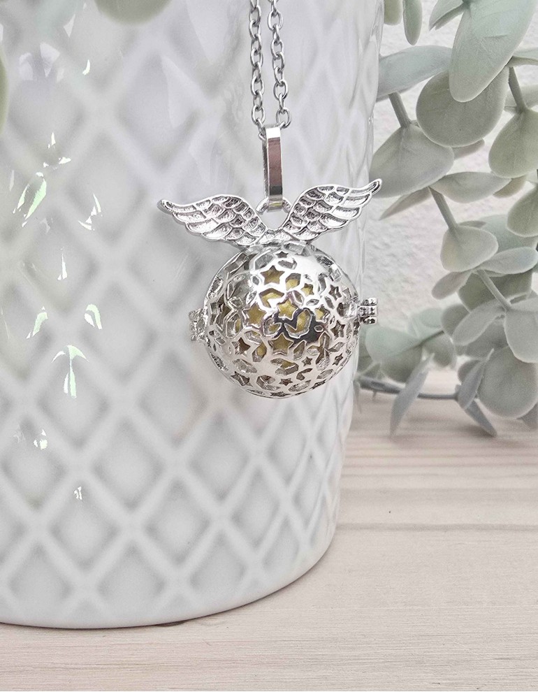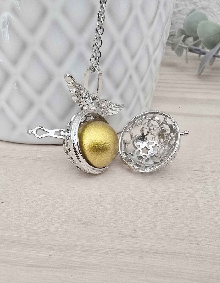 O chamador de anjos, também conhecido como bola da harmonia, consiste num pendente metálico muito semelhante a uma gaiola dentro da qual é inserida uma esfera, normalmente colorida, que emite um som muito suave e harmonioso que lembra um guizo.O seu som celestial tem o poder de atrair a protecção dos anjos, de repôr a harmonia e a paz e ajudar na elevação da vibração afastando as energias negativas. Tornou-se um maravilhoso instrumento de protecção e comunicação com os anjos e os guias espirituais. Embora não existam dados históricos que comprovem a sua origem, acredita-se que tenha surgido na Indonésia.Conta uma das lendas que os anjos ofereceram aos elementais da natureza um amuleto de protecção para que sempre que se sentissem em perigo o agitassem e assim, rapidamente, os anjos viriam protegê-los.Na cultura maia era considerado um objecto de invocação do anjo da guarda para protecção do portador do amuleto. Já na idade média, acreditava-se que o som suave do guizo estabelecia uma ligação directa com o reino celestial e invocava os anjos e os elementais da natureza para acompanharem a gravidez da mulher protegendo-a e ao seu bebé. Após o nascimento, o amuleto era pendurado no berço junto ao recém-nascido que reconhecia o tilintar suave e sentia-se protegido lembrando-se do útero da mãe.