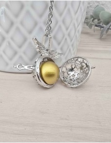 Materiais: aço prateado, esfera douradaDiâmetro aprox.: 21mmCordão: corrente prateado em aço, aprox. 50cm