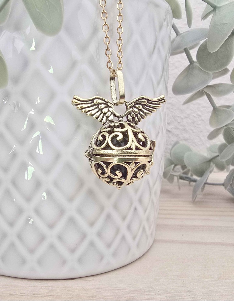 O chamador de anjos, também conhecido como bola da harmonia, consiste num pendente metálico muito semelhante a uma gaiola dentro da qual é inserida uma esfera, normalmente colorida, que emite um som muito suave e harmonioso que lembra um guizo.O seu som celestial tem o poder de atrair a protecção dos anjos, de repôr a harmonia e a paz e ajudar na elevação da vibração afastando as energias negativas. Tornou-se um maravilhoso instrumento de protecção e comunicação com os anjos e os guias espirituais. Embora não existam dados históricos que comprovem a sua origem, acredita-se que tenha surgido na Indonésia.Conta uma das lendas que os anjos ofereceram aos elementais da natureza um amuleto de protecção para que sempre que se sentissem em perigo o agitassem e assim, rapidamente, os anjos viriam protegê-los.Na cultura maia era considerado um objecto de invocação do anjo da guarda para protecção do portador do amuleto. Já na idade média, acreditava-se que o som suave do guizo estabelecia uma ligação directa com o reino celestial e invocava os anjos e os elementais da natureza para acompanharem a gravidez da mulher protegendo-a e ao seu bebé. Após o nascimento, o amuleto era pendurado no berço junto ao recém-nascido que reconhecia o tilintar suave e sentia-se protegido lembrando-se do útero da mãe.