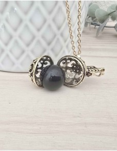 Materiais: aço dourado, esfera pretaDiâmetro aprox.: 20mmCordão: Corrente dourada em aço, aprox. 50cm