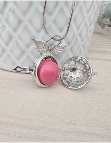 Materiais: aço prateado, esfera rosaDiâmetro aprox.: 21mmCordão: corrente prateada em aço, aprox. 70cm