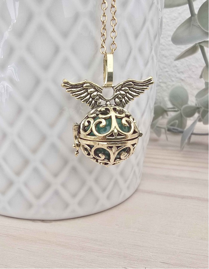 O chamador de anjos, também conhecido como bola da harmonia, consiste num pendente metálico muito semelhante a uma gaiola dentro da qual é inserida uma esfera, normalmente colorida, que emite um som muito suave e harmonioso que lembra um guizo.O seu som celestial tem o poder de atrair a protecção dos anjos, de repôr a harmonia e a paz e ajudar na elevação da vibração afastando as energias negativas. Tornou-se um maravilhoso instrumento de protecção e comunicação com os anjos e os guias espirituais. Embora não existam dados históricos que comprovem a sua origem, acredita-se que tenha surgido na Indonésia.Conta uma das lendas que os anjos ofereceram aos elementais da natureza um amuleto de protecção para que sempre que se sentissem em perigo o agitassem e assim, rapidamente, os anjos viriam protegê-los.Na cultura maia era considerado um objecto de invocação do anjo da guarda para protecção do portador do amuleto. Já na idade média, acreditava-se que o som suave do guizo estabelecia uma ligação directa com o reino celestial e invocava os anjos e os elementais da natureza para acompanharem a gravidez da mulher protegendo-a e ao seu bebé. Após o nascimento, o amuleto era pendurado no berço junto ao recém-nascido que reconhecia o tilintar suave e sentia-se protegido lembrando-se do útero da mãe.