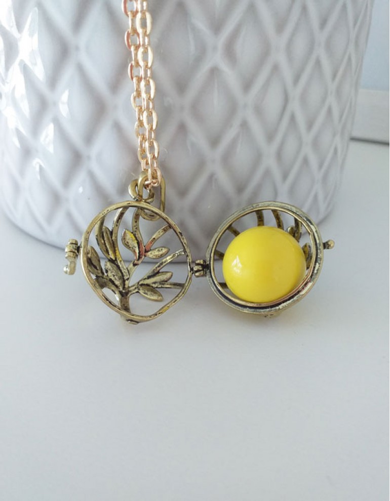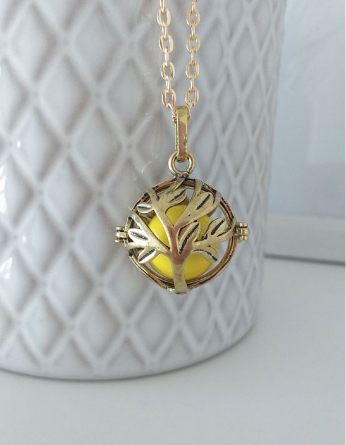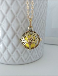 Materiais: aço dourado, esfera amarelaDiâmetro aprox.: 25mmCordão: corrente dourada em aço, aprox. 70cm