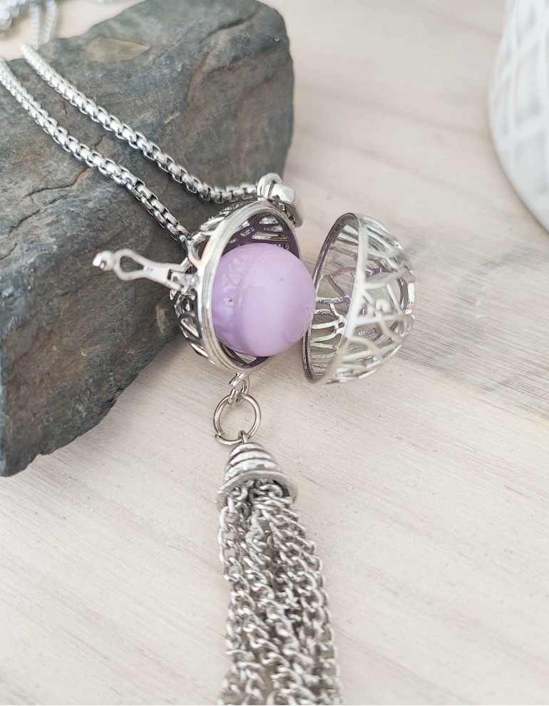 Materiais: aço prateado, esfera violetaDiâmetro aprox.: 25mmAltura aprox.: 15cmCordão: corrente prateada em aço, aprox. 60cm