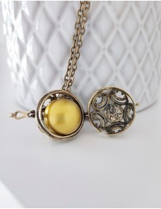 Materiais: aço bronze e dourado, esfera douradaDiâmetro aprox.: 22mmCordão: corrente bronze em aço, aprox. 70cm