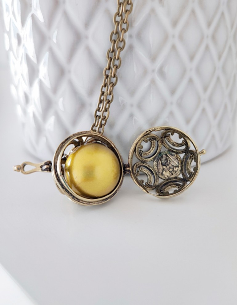 O chamador de anjos, também conhecido como bola da harmonia, consiste num pendente metálico muito semelhante a uma gaiola dentro da qual é inserida uma esfera, normalmente colorida, que emite um som muito suave e harmonioso que lembra um guizo.O seu som celestial tem o poder de atrair a protecção dos anjos, de repôr a harmonia e a paz e ajudar na elevação da vibração afastando as energias negativas. Tornou-se um maravilhoso instrumento de protecção e comunicação com os anjos e os guias espirituais. Embora não existam dados históricos que comprovem a sua origem, acredita-se que tenha surgido na Indonésia.Conta uma das lendas que os anjos ofereceram aos elementais da natureza um amuleto de protecção para que sempre que se sentissem em perigo o agitassem e assim, rapidamente, os anjos viriam protegê-los.Na cultura maia era considerado um objecto de invocação do anjo da guarda para protecção do portador do amuleto. Já na idade média, acreditava-se que o som suave do guizo estabelecia uma ligação directa com o reino celestial e invocava os anjos e os elementais da natureza para acompanharem a gravidez da mulher protegendo-a e ao seu bebé. Após o nascimento, o amuleto era pendurado no berço junto ao recém-nascido que reconhecia o tilintar suave e sentia-se protegido lembrando-se do útero da mãe.