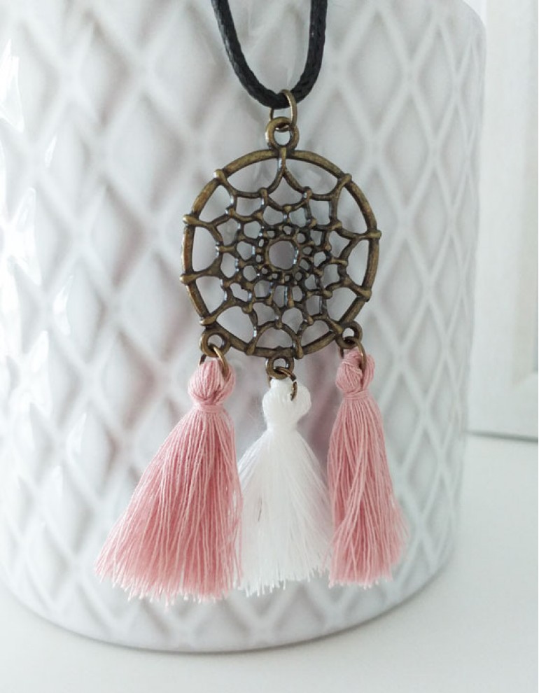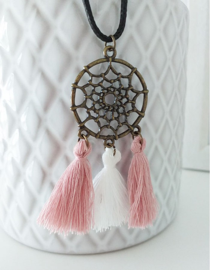 Pendente: caça-sonhos (cor bronze) com 3 tassels (cores aleatórias)
