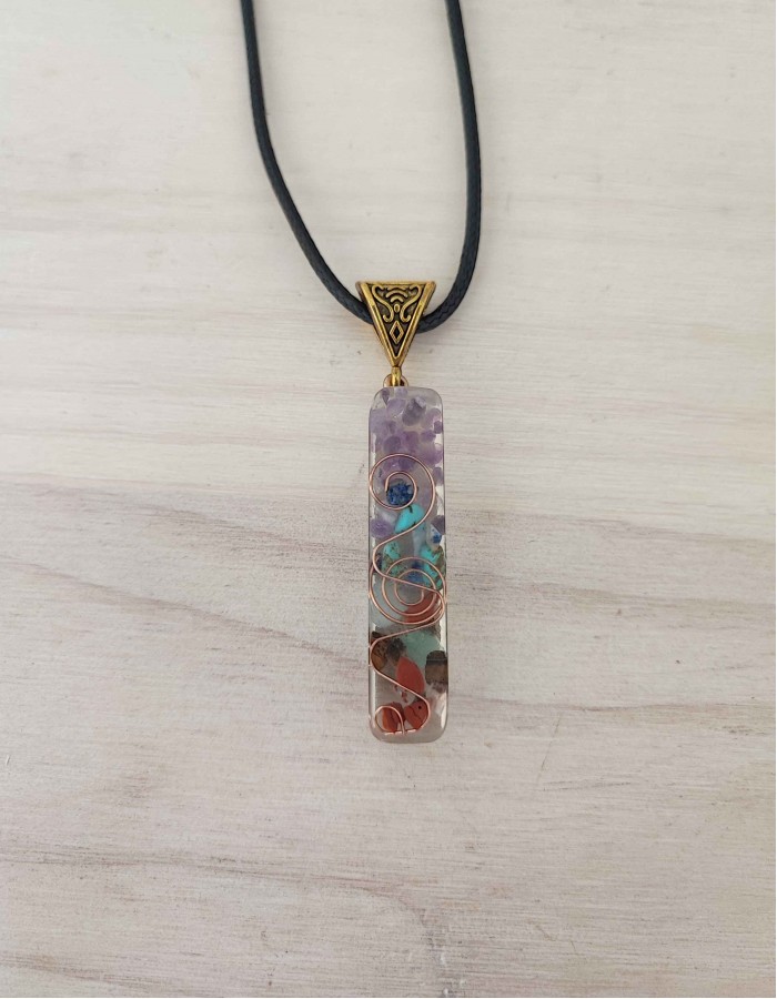 Colar de orgonite com os sete cristais dos principais chakras.