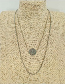Conjunto de colares de camadas em aço com pendente.