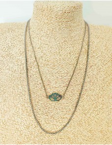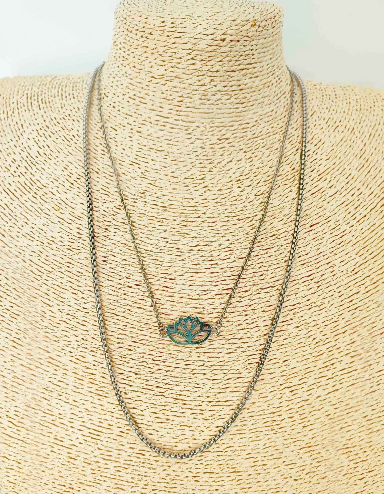 Conjunto de colares de camadas em aço com pendente.
