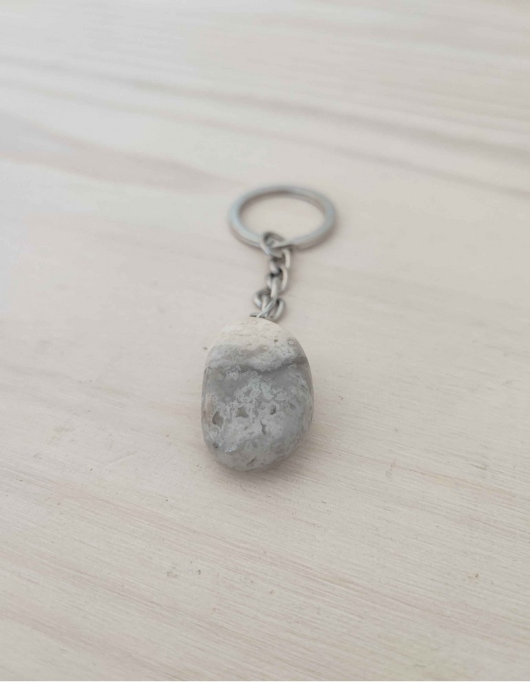 Simplifique o seu dia-a-dia com este prático e auspicioso porta-chaves de ágata cinzenta.