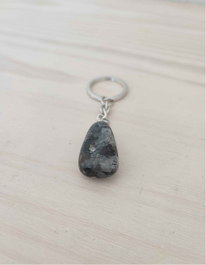 Simplifique o seu dia-a-dia com este prático e auspicioso porta-chaves de larvikita.
