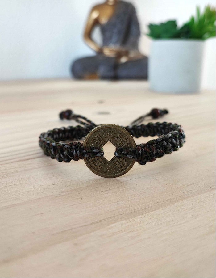 Pulseira da sorte com moeda chinesa de Feng Shui.