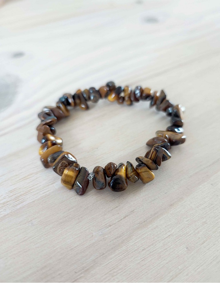 Pulseira de chips de cristais de olho de tigre.