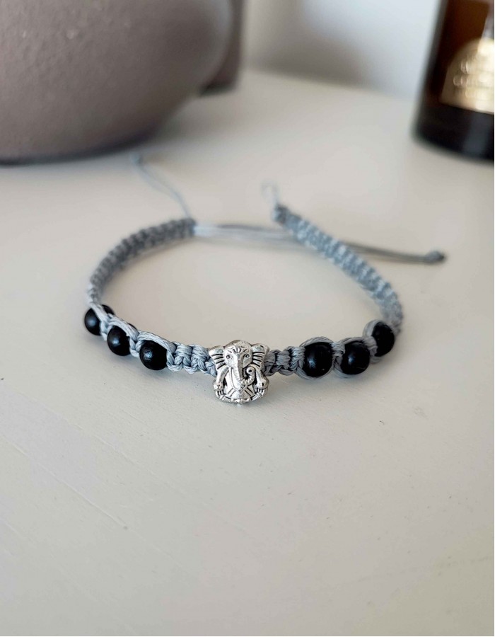 Materiais: cordão de algodão, contas de madeira (ébano), acessórios metálicos (cor prateado)