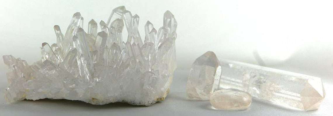 O Quartzo é um cristal dióxido de silício com uma dureza de 7 na escala de Mohs. O seu sistema é hexagonal (trigonal), e está entre os minerais mais abundantes.Pode ser encontrado em todos os continentes e, talvez, em todos os países da Terra. Também é conhecido como Cristal de Rocha ou Quartzo Claro.Existe em vários graus de clareza, de claros como água a densamente enevoados. Por vezes podem surgir com uma leve coloração amarelada, laranja ou rosa derivado de uma quantidade diminuta de outros cristais presentes na sua estrutura.Geralmente, as pedras de Quartzo Cristal são imaginadas como cristais prismáticos incolores, em forma de cilindro hexagonal com lados relativamente regulares e terminações naturais facetadas em um ou ambos os lados, mas o Quartzo ocorre em muitas outras formas de crescimento.O nome provém do grego e significa "gelo" porque acreditava-se que os cristais de Quartzo eram água congelada a uma temperatura tão baixa que nunca poderia derreter.É objecto de muitas crenças e folclore espiritual. Os japoneses chamavam-na de "jóia perfeita" e viam-na como um símbolo do espaço, da pureza, da perseverança e impaciência infinitas. As culturas indígenas da América do Norte acreditavam que os Quartzos Cristal eram entidades vivas que os presenteavam com alimentos como oferendas rituais. As bolas de cristal foram trazidas pelos cruzados e ganharam a fama de possuírem poderes mágicos. Na Escócia e na Irlanda, esferas de cristal eram usadas para curar as enfermidades no gado. Em culturas passadas das Américas Central e do Sul, os cristais de Quartzo eram esculpidos em forma de crânios humanos e venerados como objectos religiosos poderosos - as moradas dos ancestrais falecidos ou dos deuses.